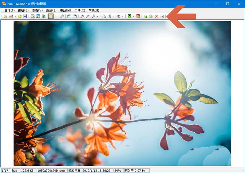 6、這樣,ACDSee8工具欄中的圖標(biāo)就變成小圖標(biāo)了。