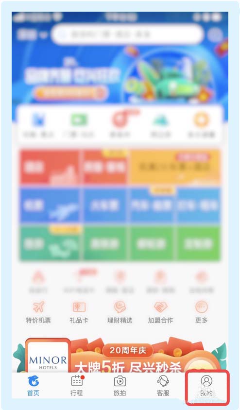 2、在攜程旅行app首頁,選擇并點擊【我的】選項。