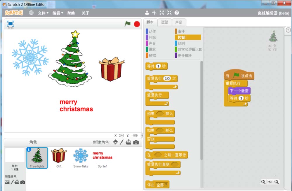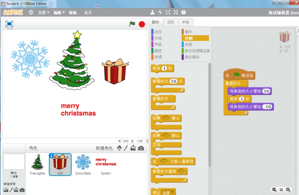 scratch怎么制作一個(gè)圣誕快樂的小程序?