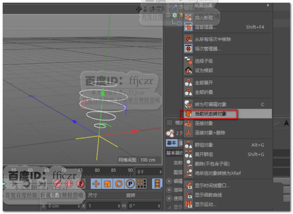 4、將當(dāng)前的克隆狀態(tài)轉(zhuǎn)為對象,隱藏原克隆組,這很重要,后面要修改可以用到。轉(zhuǎn)為對象后,可以得到一組圓環(huán)樣條線,如圖所示。