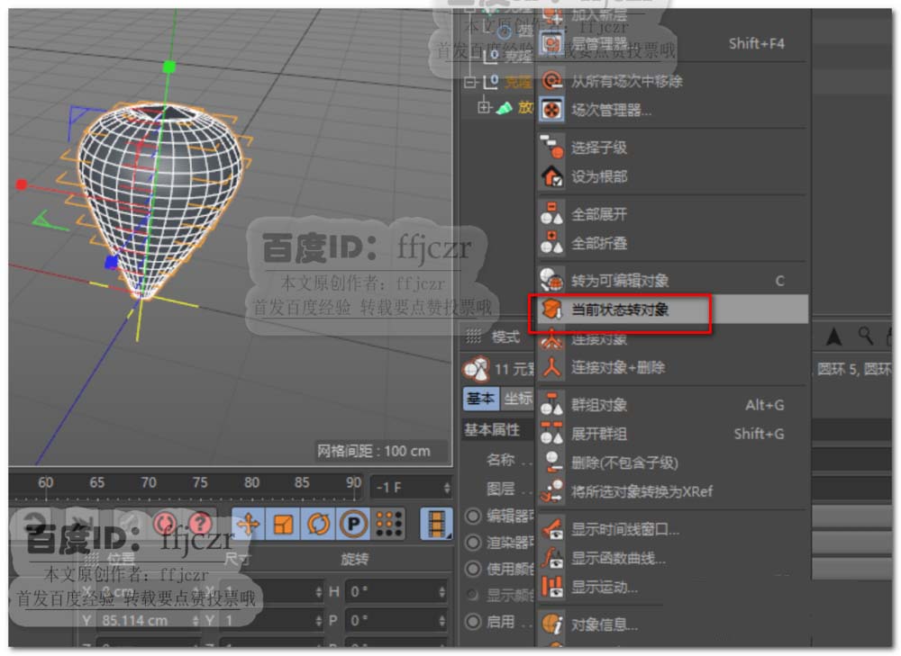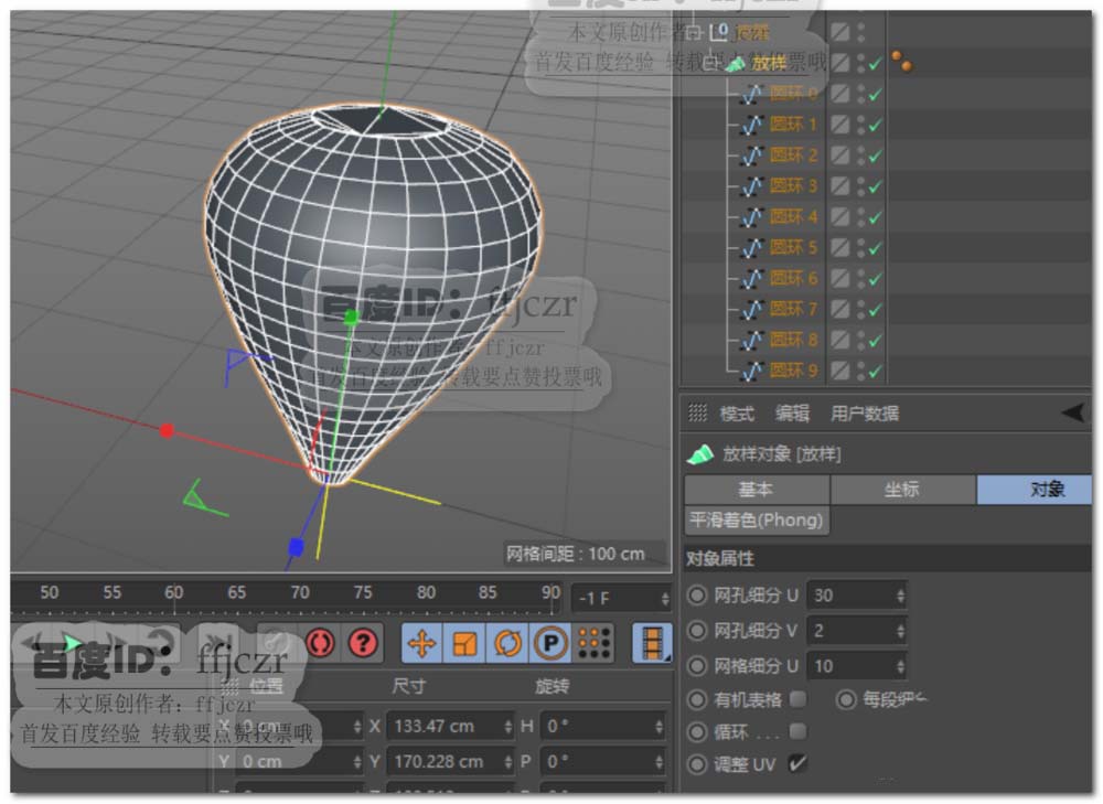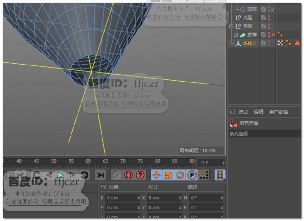 5、給上步得到的樣條曲線組添加一個(gè)放樣命令,即可得到根據(jù)曲線組構(gòu)成的模型(通過調(diào)整將克隆數(shù)量更改為10后可得到外表更圓順的曲面);將當(dāng)前的放樣狀態(tài)轉(zhuǎn)為對象。