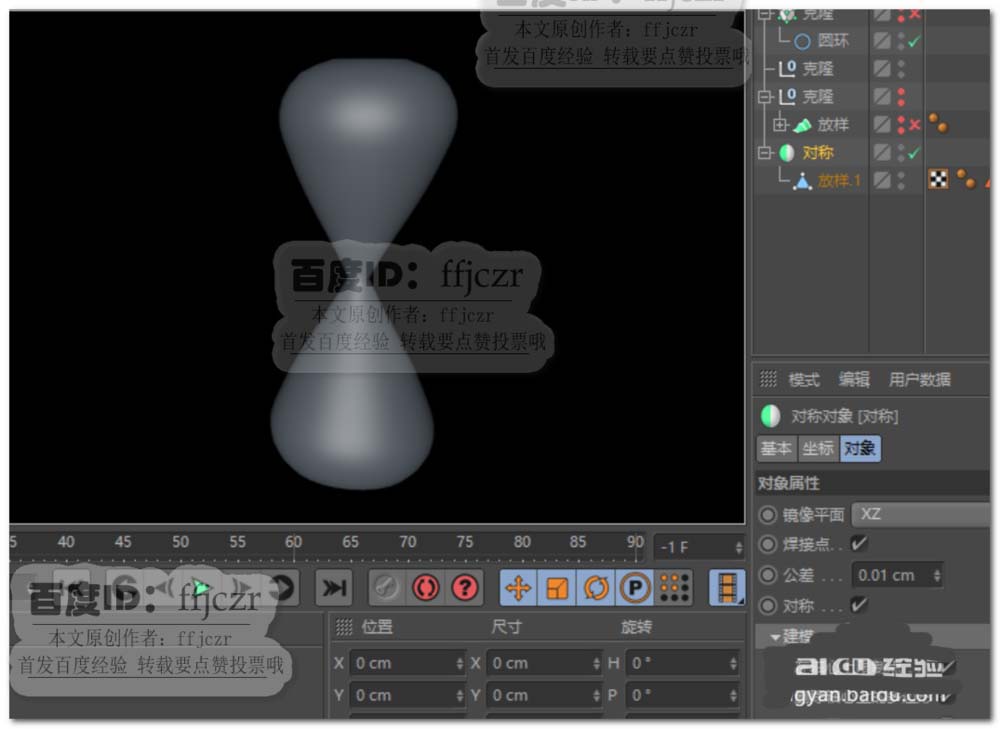 7、最后,給上步模型添加一個(gè)對稱,對稱面為XZ。通過放樣得到的模型是不用添加曲面細(xì)分就能得到外表圓滑模型的。