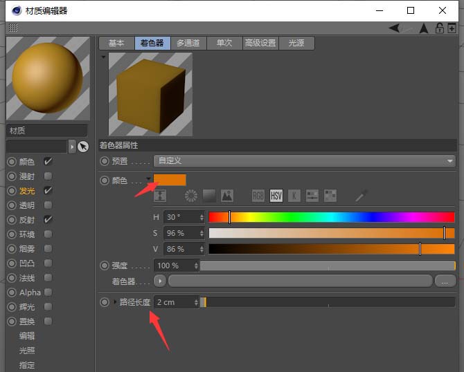 4、接著調(diào)節(jié)你想要的顏色,然后調(diào)節(jié)路徑長度,路徑長度需要根據(jù)你的模型大小來試,可以多試幾遍