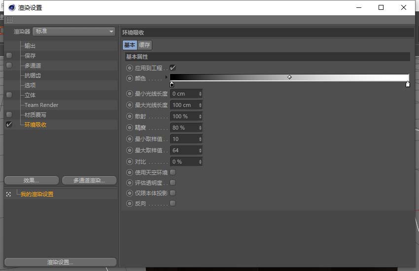 8、在渲染設(shè)置里面添加環(huán)境吸收,