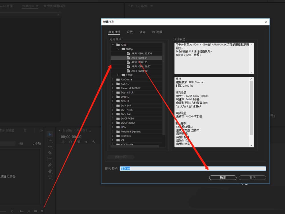 1、安裝好Premiere軟件,雙擊其快捷圖標啟動PR,新建項目,然后在新建序列,在新建序列窗口中選擇序列或設(shè)置序列點擊確定。