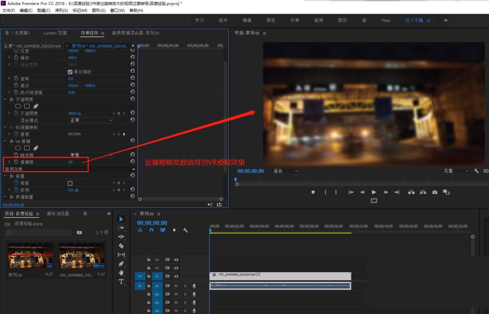 premiere素材怎么添加VR模糊效果?