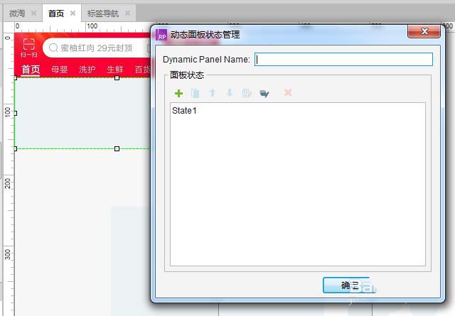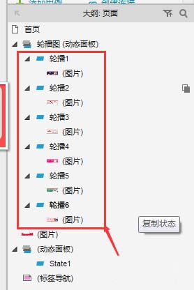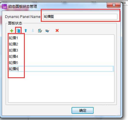 3、我們首先給這個(gè)動(dòng)態(tài)面板命名,主要是為了更方便的找到這個(gè)面板;命名好之后可以點(diǎn)擊添加或者是復(fù)制按鈕,根據(jù)自己的圖創(chuàng)建輪播圖(如下圖所示):