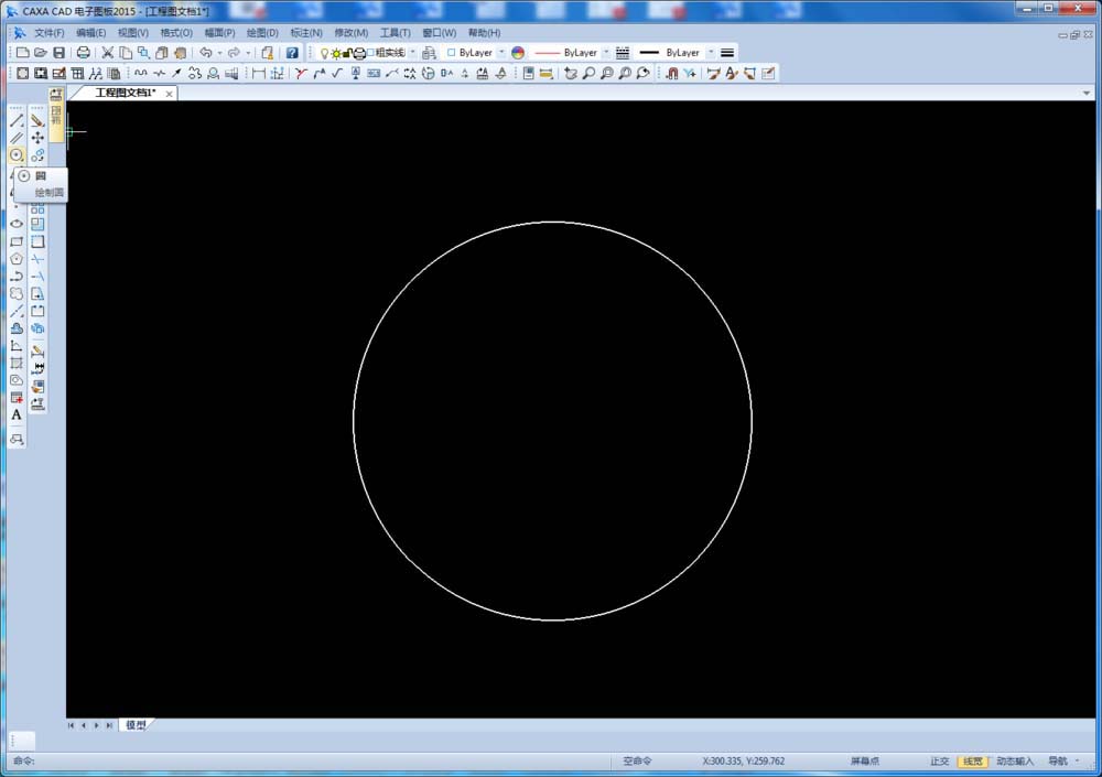 2、單擊繪圓按鈕繪制一個圓形,大小自己定就可以,也可以隨便定一個就行