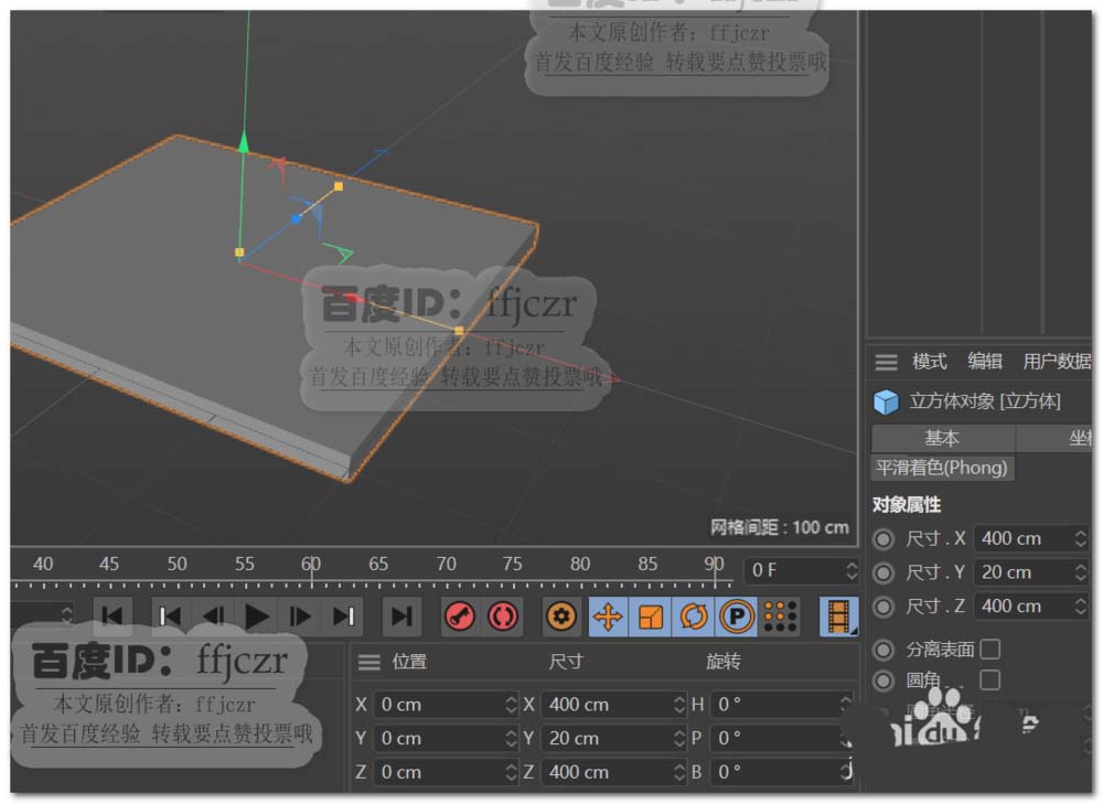 1、創(chuàng)建一個(gè)立方體,尺寸為400*20*400。這是凳面的外形輪廓尺寸。