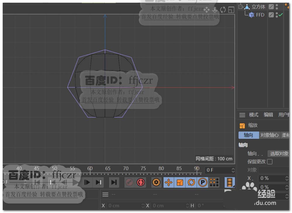 3、給多邊形添加一個(gè)FFD變形器,匹配到父級(jí)后在頂視圖調(diào)整FFD的控制點(diǎn)使多邊形的外形得到圓弧的造型,如圖所示。
