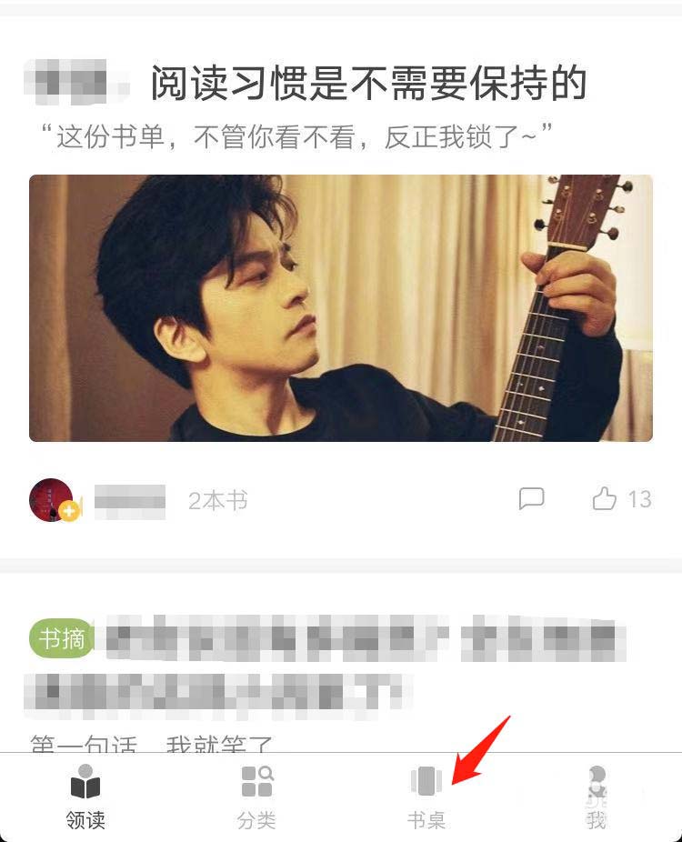 2、點(diǎn)擊“書桌”,進(jìn)入書桌,點(diǎn)擊這本最近正在看的書;
