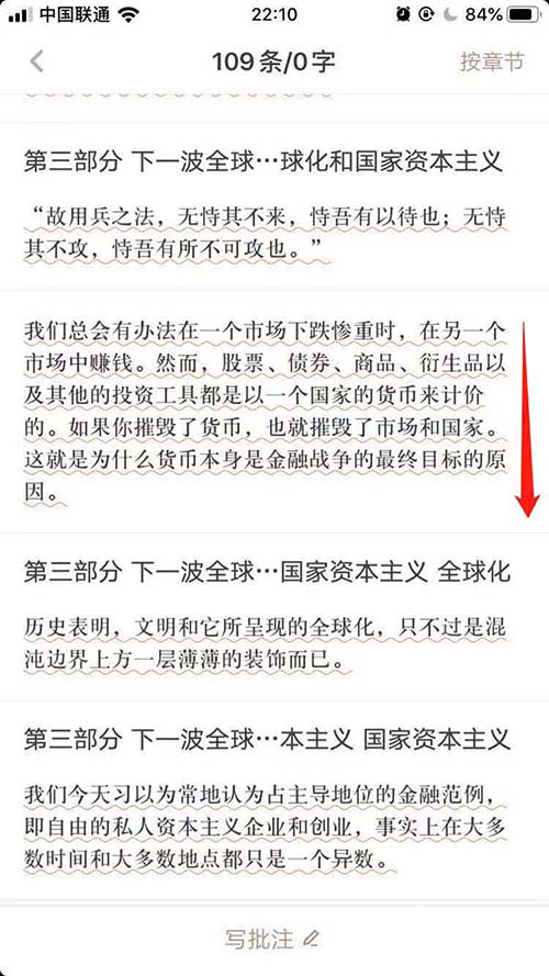 6、進(jìn)入所有劃線筆記頁面,向下滑動(dòng),查看之前劃線筆記。