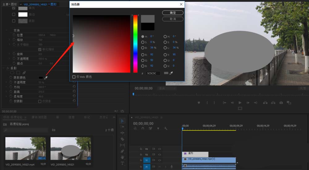 6、這里我們還可以單擊更改投影的顏色,為投影設(shè)置不一樣的顏色效果。這樣我們就為當(dāng)前的媒體對(duì)象添加了投影效果。