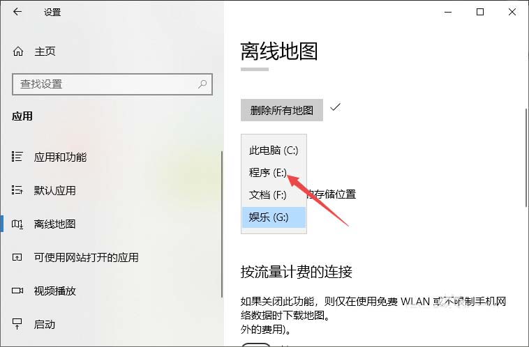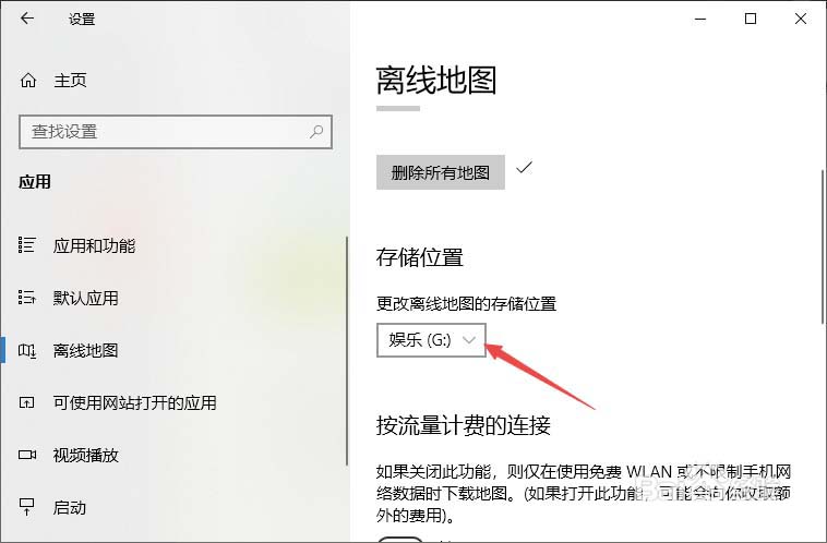 5、點擊更改離線地圖的存儲位置下方的下拉箭頭。