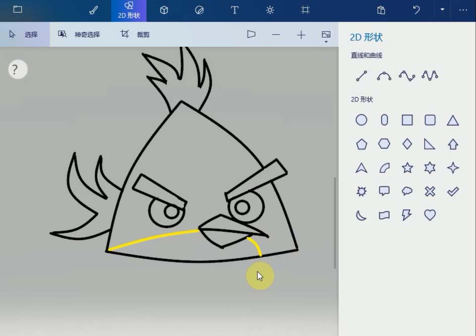 電腦自帶的畫(huà)圖工具怎么繪制黃色憤怒的小鳥(niǎo)?