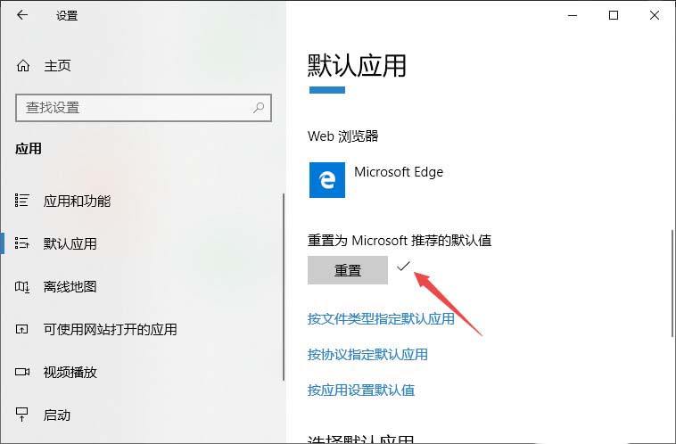 6、點擊后在重置后面會出現(xiàn)一個勾選,這樣我們也就重置默認應用成功了。