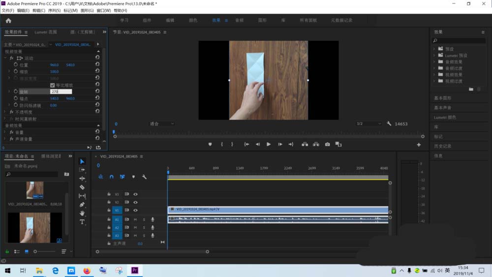premiereCC2019豎視頻怎么轉(zhuǎn)為橫視頻?