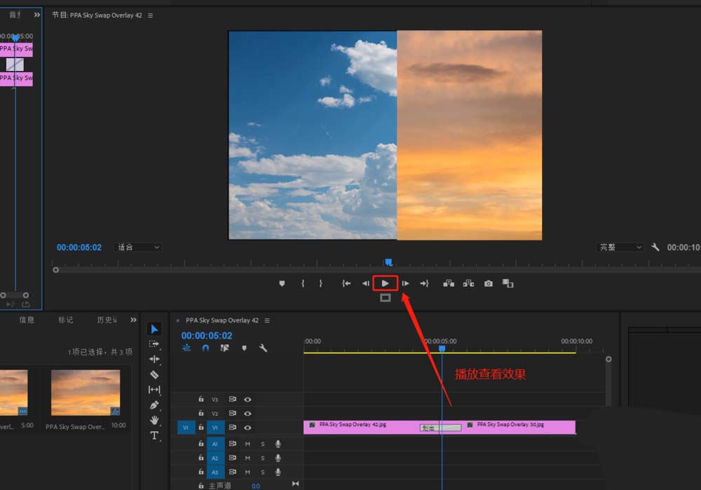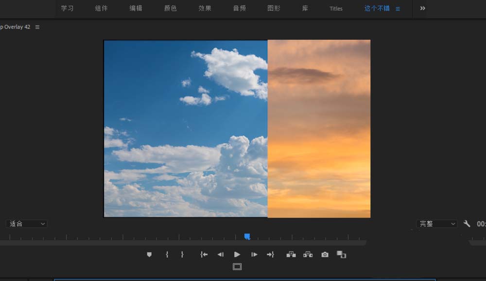 6、在點擊預(yù)覽窗口下的播放按鈕,播放視頻軌的媒體素材,當播放到過渡位置時,就能看到劃出顯示的過渡效果。