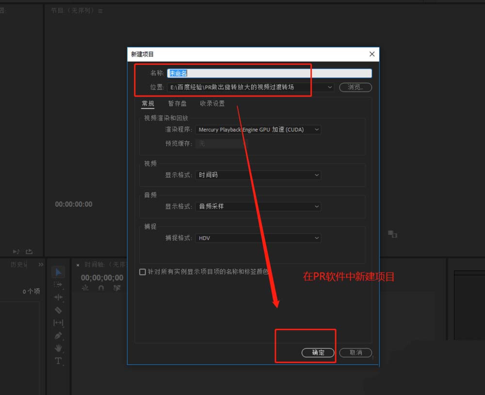 1、啟動打開Premiere軟件,選擇新建一個項目,設(shè)置這個項目的名稱與保存位置,點擊確定。