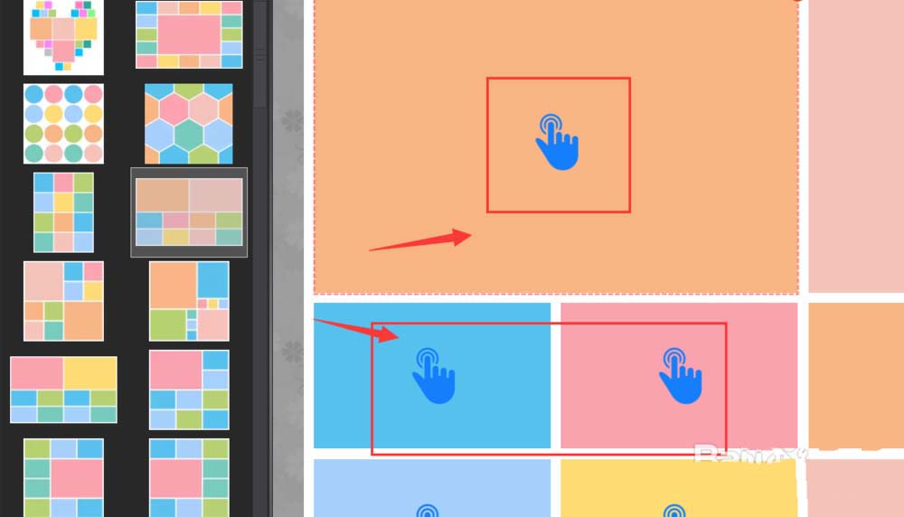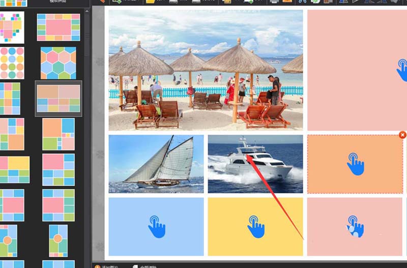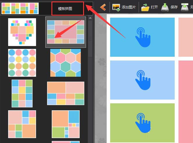 2、選擇模板拼圖欄,在下方會(huì)顯示很多種模板,單擊添加