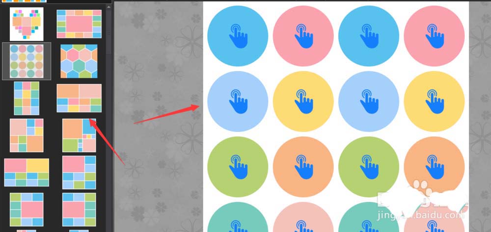 3、選擇模板后,在右側(cè)會(huì)顯示對(duì)應(yīng)的樣式,點(diǎn)擊小手的部分,可以添加圖片