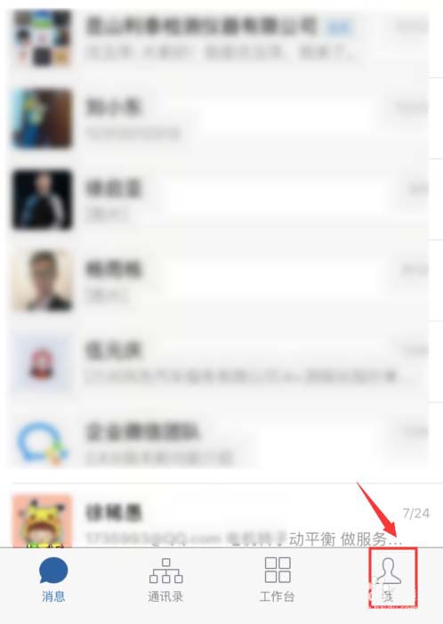 2、進(jìn)入企業(yè)微信,點(diǎn)擊右下角的我;