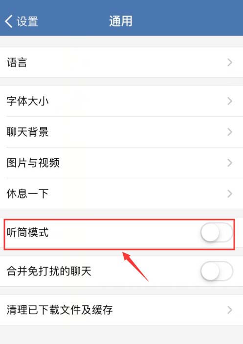 5、此時(shí)通用里面,聽筒模式后面按鈕默認(rèn)是關(guān)閉的;