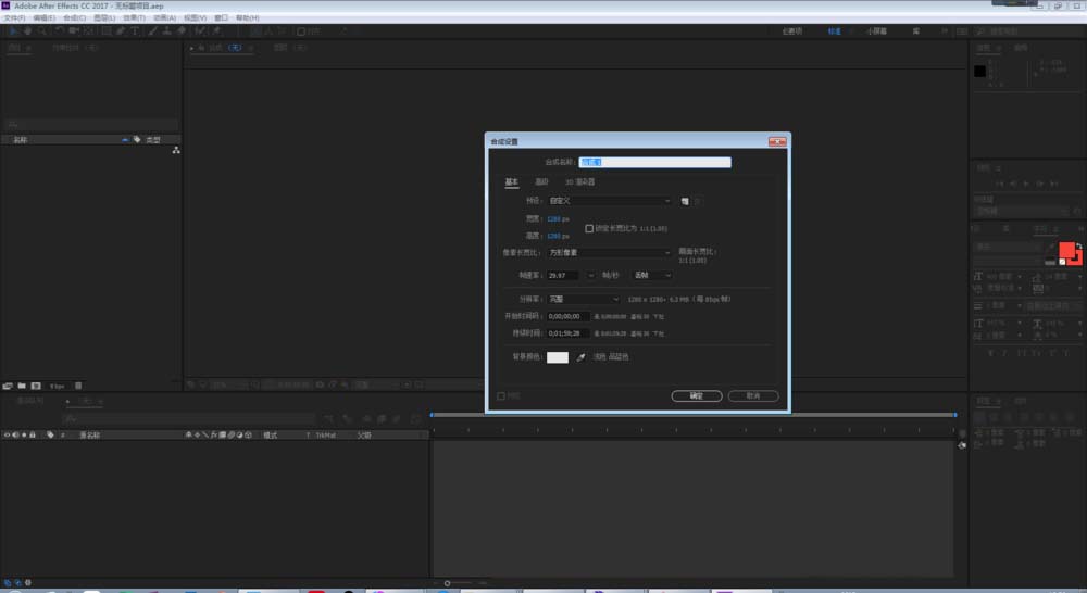 1、打開軟件,新建一個合成,合成大小可以自定,這里我是設置的1280*1280