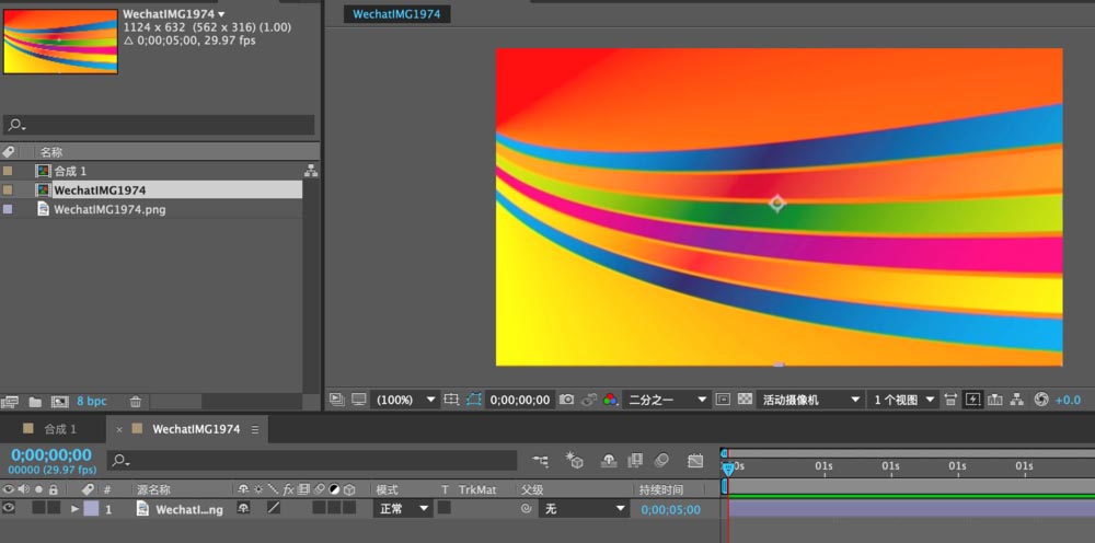 2、打開ae軟件,新建一個合成,將素材導(dǎo)入,拖動到合成編輯區(qū)域。