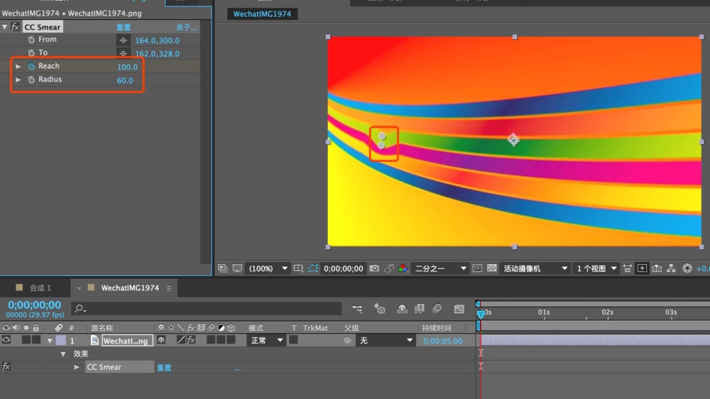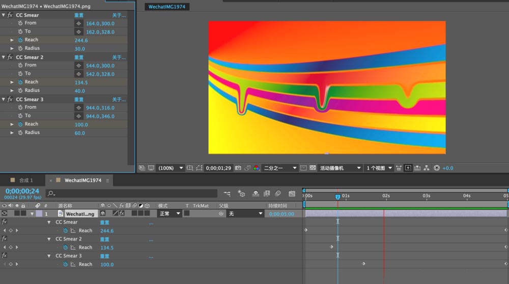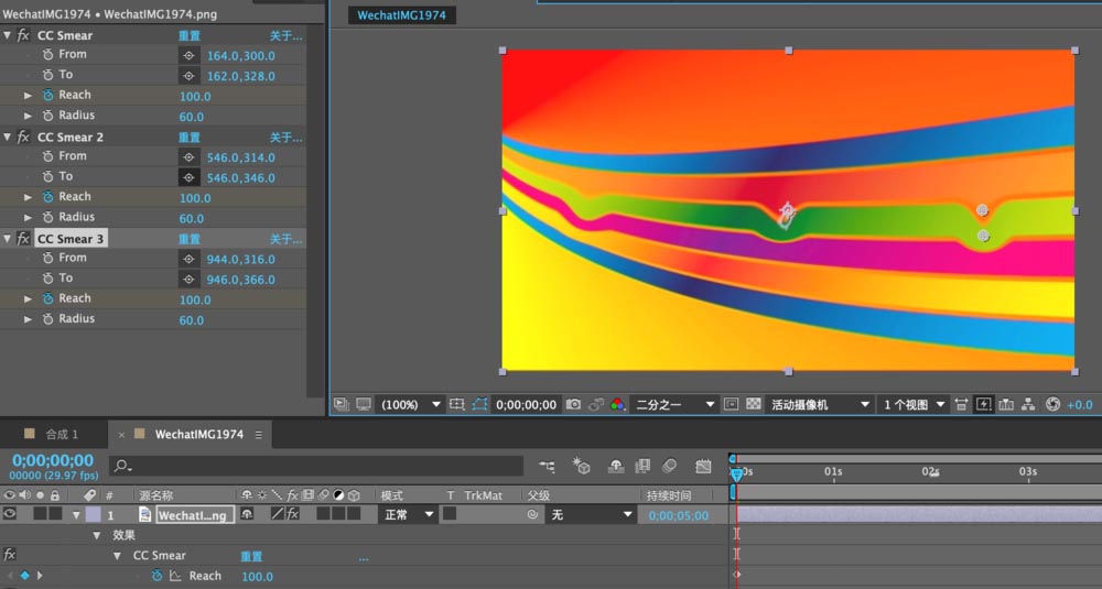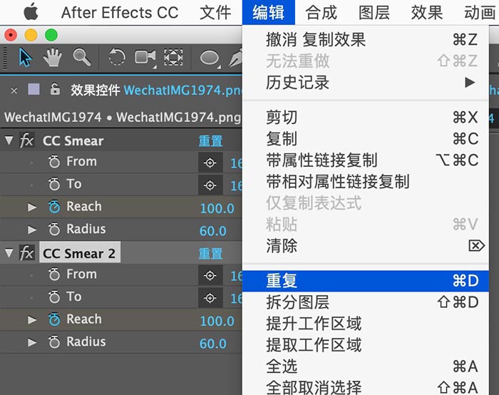 6、ctrl+d,重復(fù)復(fù)制cc smear效果控件。