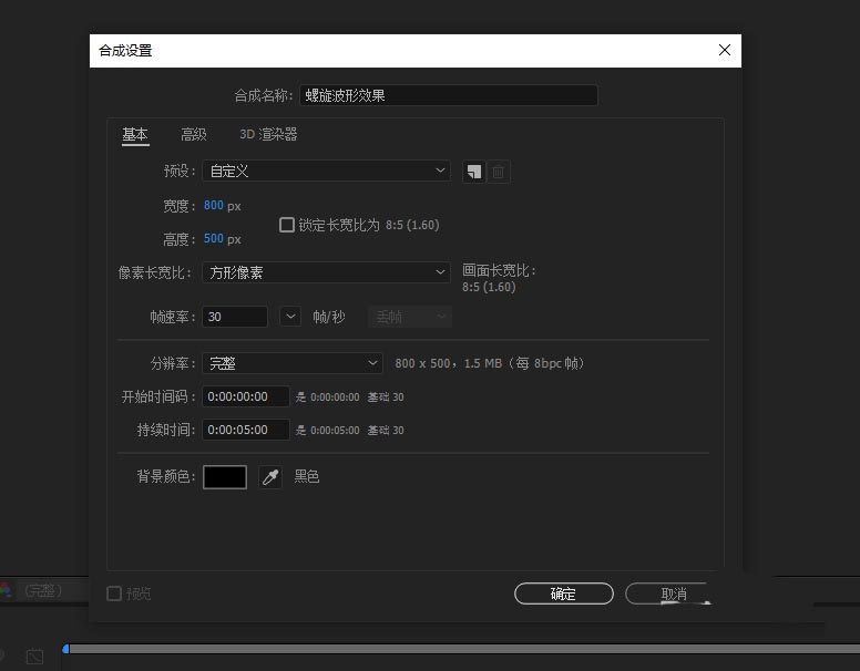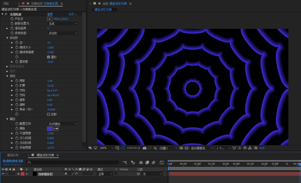 1、打開AE軟件,命名螺旋波形效果,調(diào)整相應(yīng)的參數(shù)。