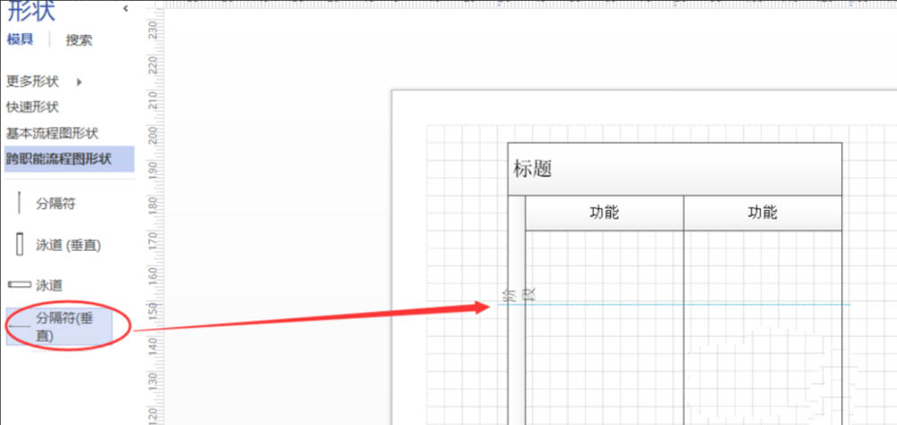 6、如果需要將泳道分割成多個(gè)階段,將工具中的分割線托人到泳道上。