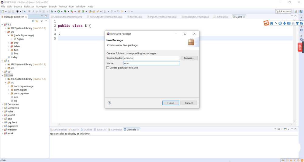 5、會彈出一個框,輸入包名就行,再點擊“Finish”