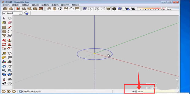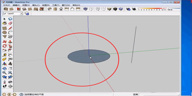 1、打開Sketchup,在左側(cè)菜單欄中找到并選擇“圓形”工具,在畫布上畫出圓形。
