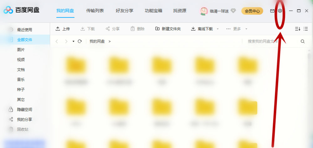 2、在百度網(wǎng)盤首頁,單擊右上角的【設(shè)置】按鈕