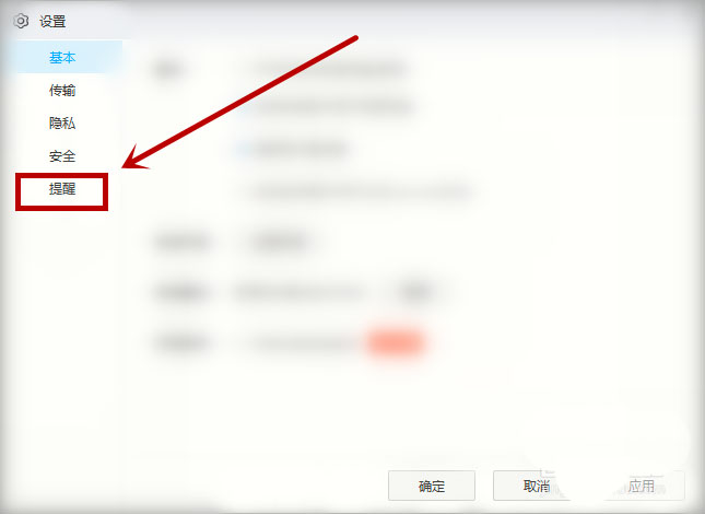 4、在彈出的【設(shè)置】對話框中,選擇【提醒】選項卡單擊