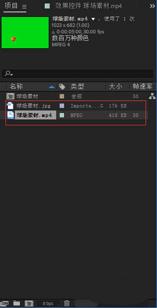 2、球場素材拖入時間軸面板——籃球素材拖入時間軸面板