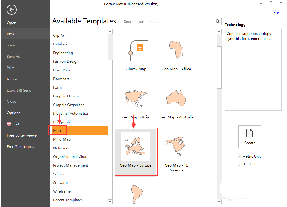 1、打開(kāi)Edraw Max,在地圖中雙擊歐洲地圖;;