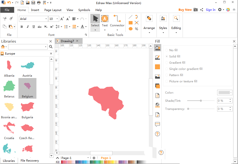 Edraw Max億圖圖示怎么繪制比利時(shí)地圖?