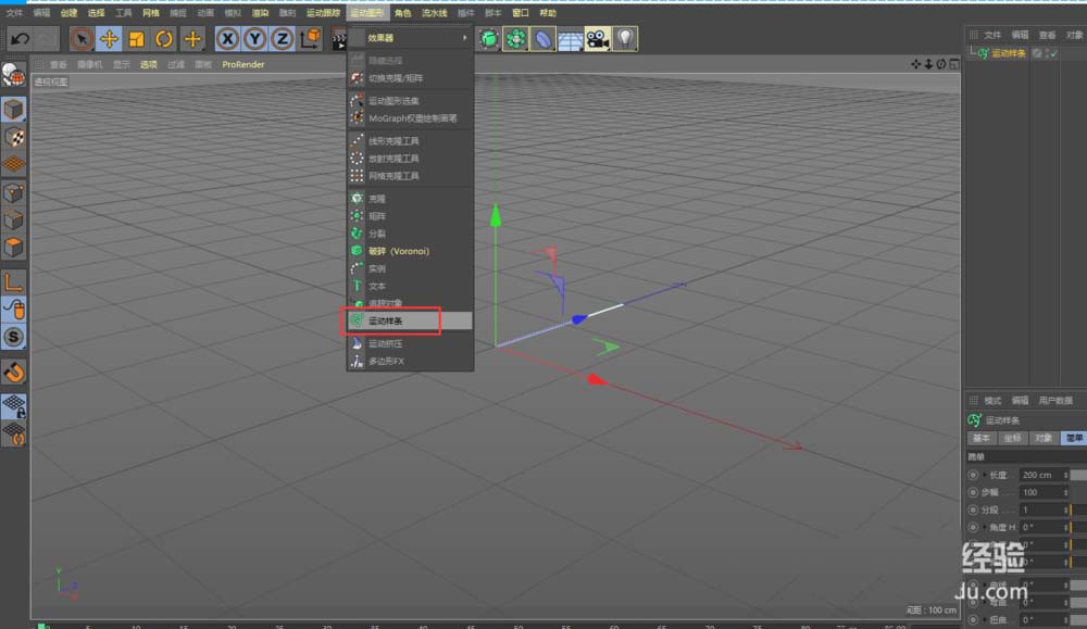 2、在場(chǎng)景中創(chuàng)建一條運(yùn)動(dòng)樣條;