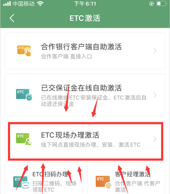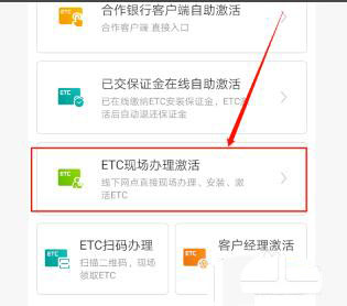 5、頁(yè)面中選擇ETC現(xiàn)場(chǎng)辦理激活