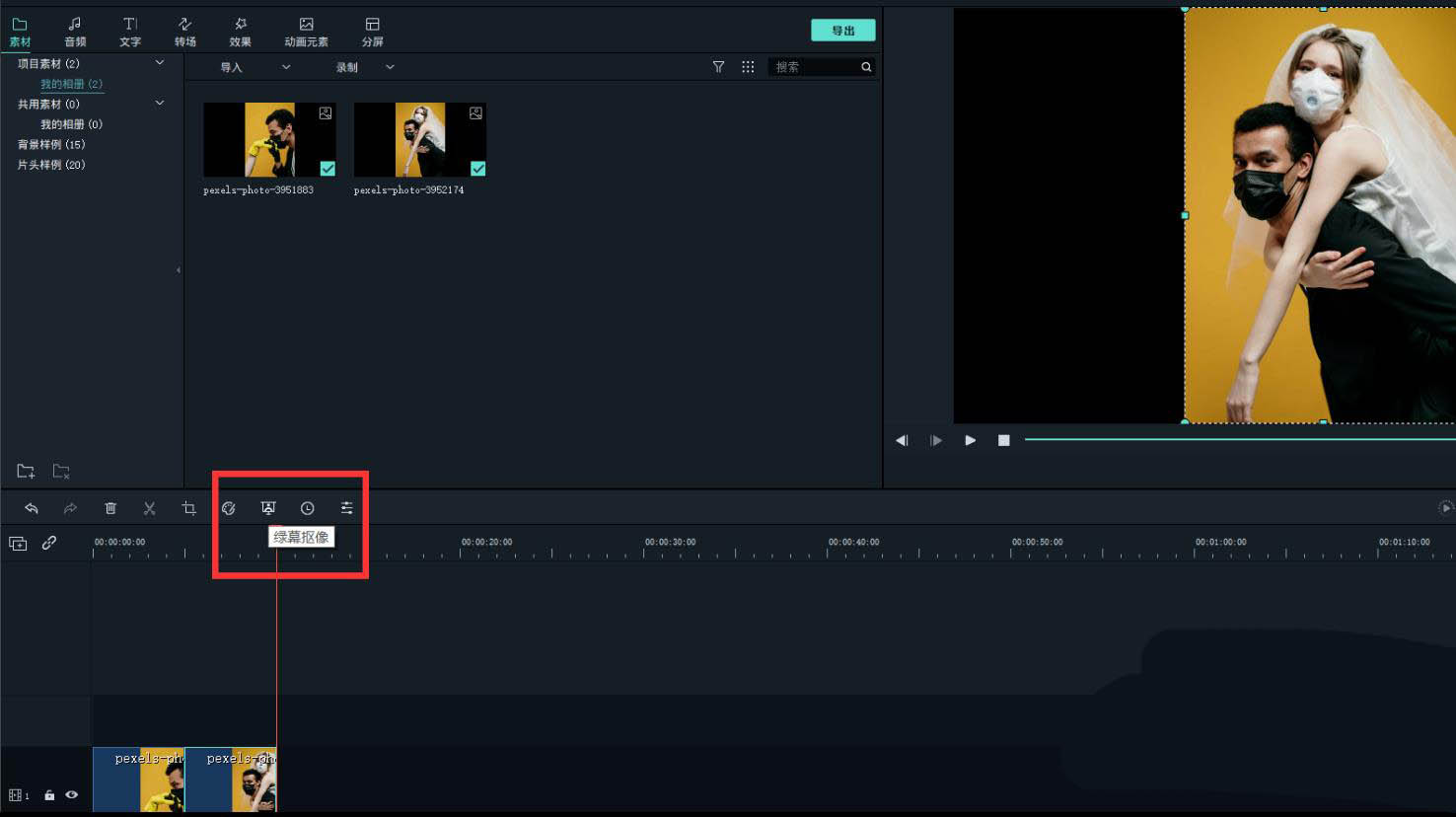2、然后點(diǎn)擊綠幕摳圖圖標(biāo)。