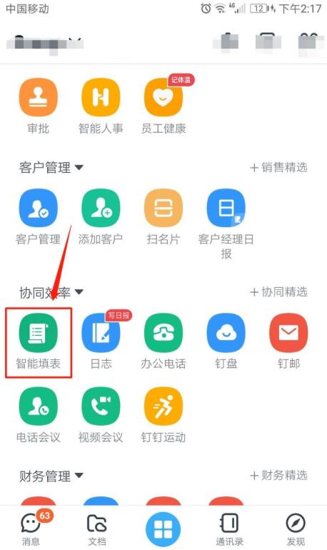 2、在釘釘工作頁面,點擊“智能填表”選項。