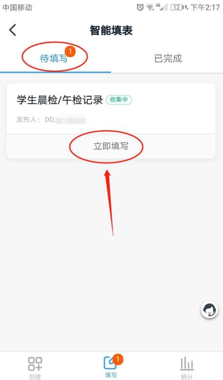 4、在智能填表界面,點擊“待填寫”選項卡,然后點擊“立即填寫”。