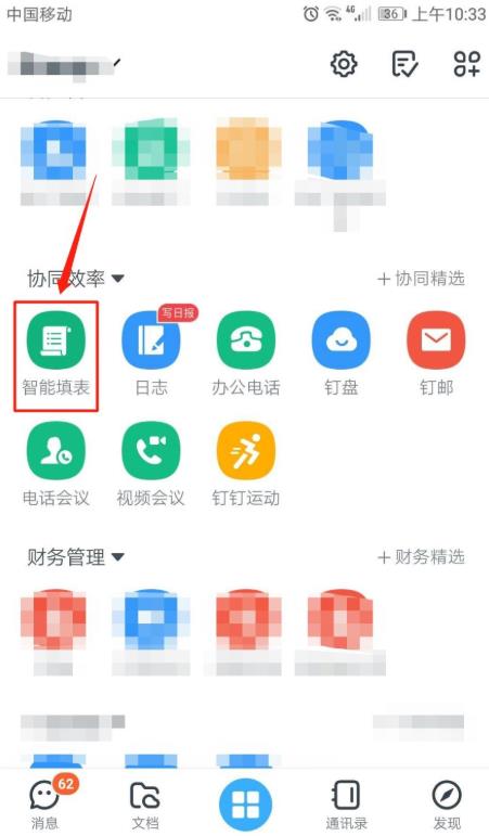 2、在釘釘工作頁面,點(diǎn)擊“智能填表”圖標(biāo)。