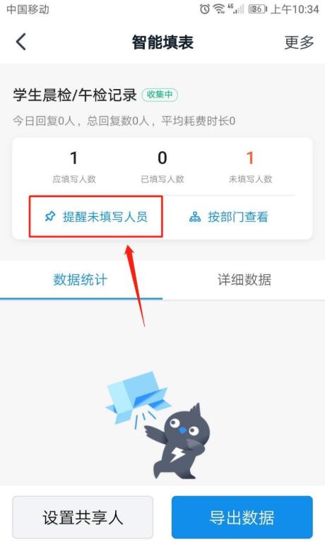 5、在所選表單的統(tǒng)計(jì)頁面,點(diǎn)擊“提醒未填寫人員”。