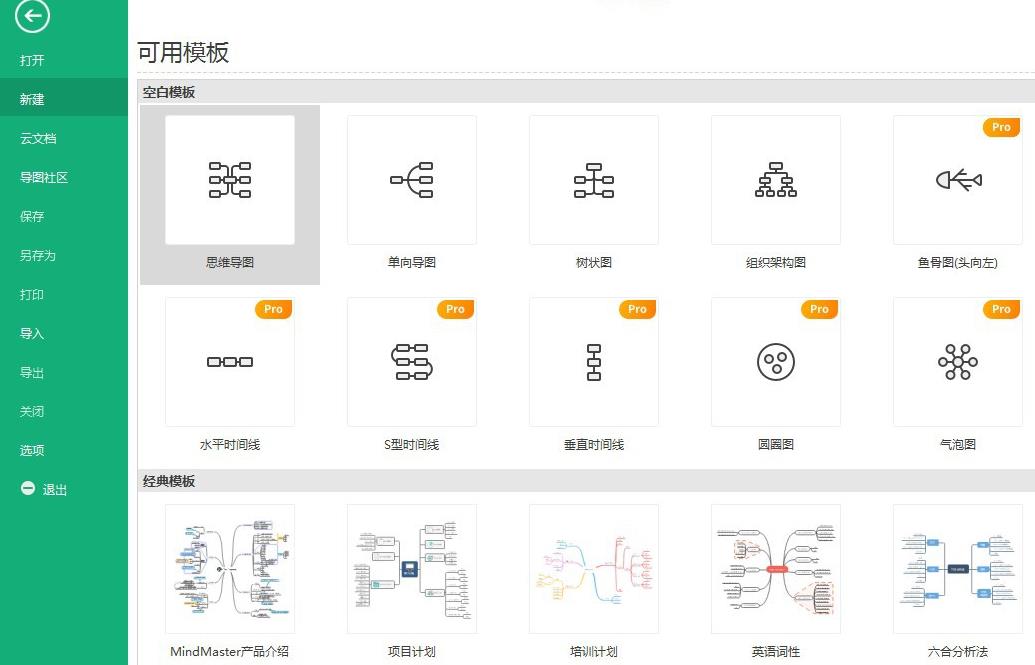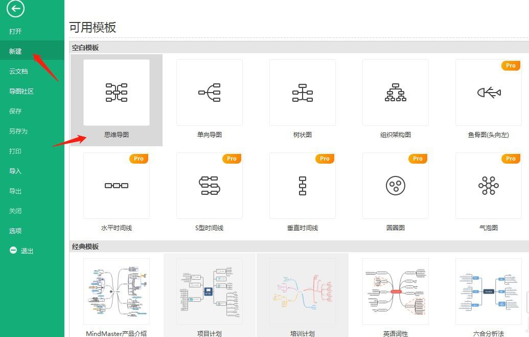 雙擊打開思維導(dǎo)圖軟件,找到新建,右邊選擇合適的模板創(chuàng)建