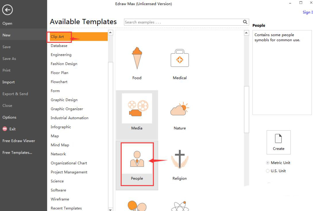 1、打開(kāi)Edraw Max軟件,在剪切畫(huà)中雙擊人物;