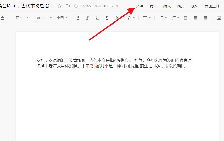 2、進(jìn)入文檔后,點(diǎn)擊上方的“文件”。