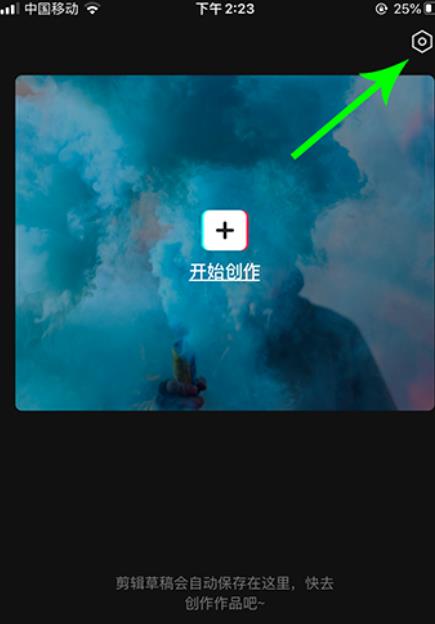 2、進(jìn)入剪映后選擇右上角的設(shè)置圖標(biāo)。